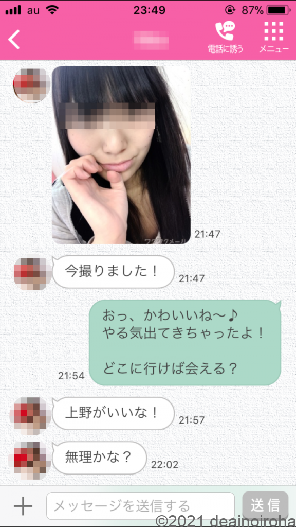 相手の女性はさっそく写メ送ってくれました。