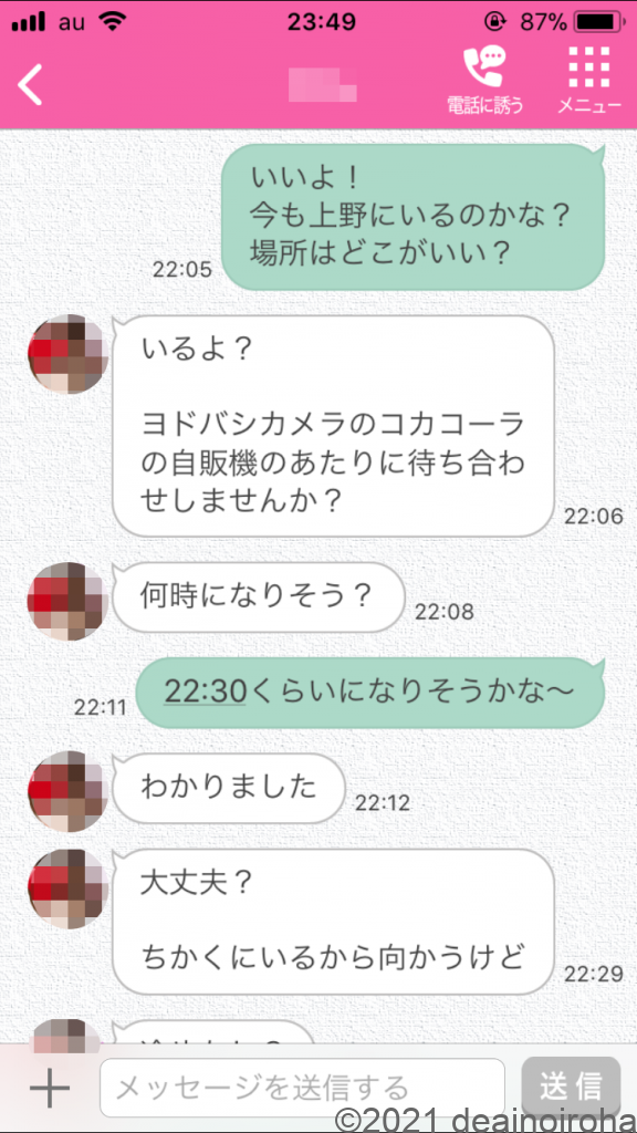 だから、駅の改札口とかマルイの前とかを指定してくることを予想しながら